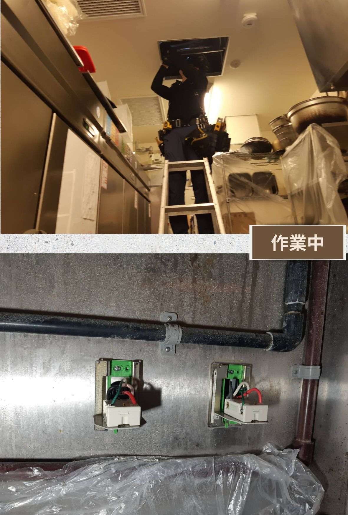 商業施設内の飲食店にて、新しい蒸し器の導入に伴う厨房コンセントの新設を承りました。